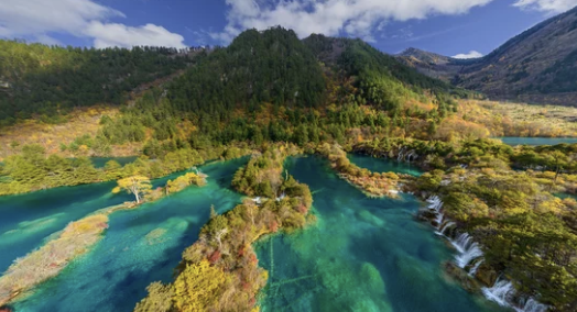 구채구는 사천성 북부에 위치한 자연 보호구역으로, 형형색색의 호수와 폭포, 산봉우리들이 어우러져 마치 동화 속 풍경을 연출합니다.